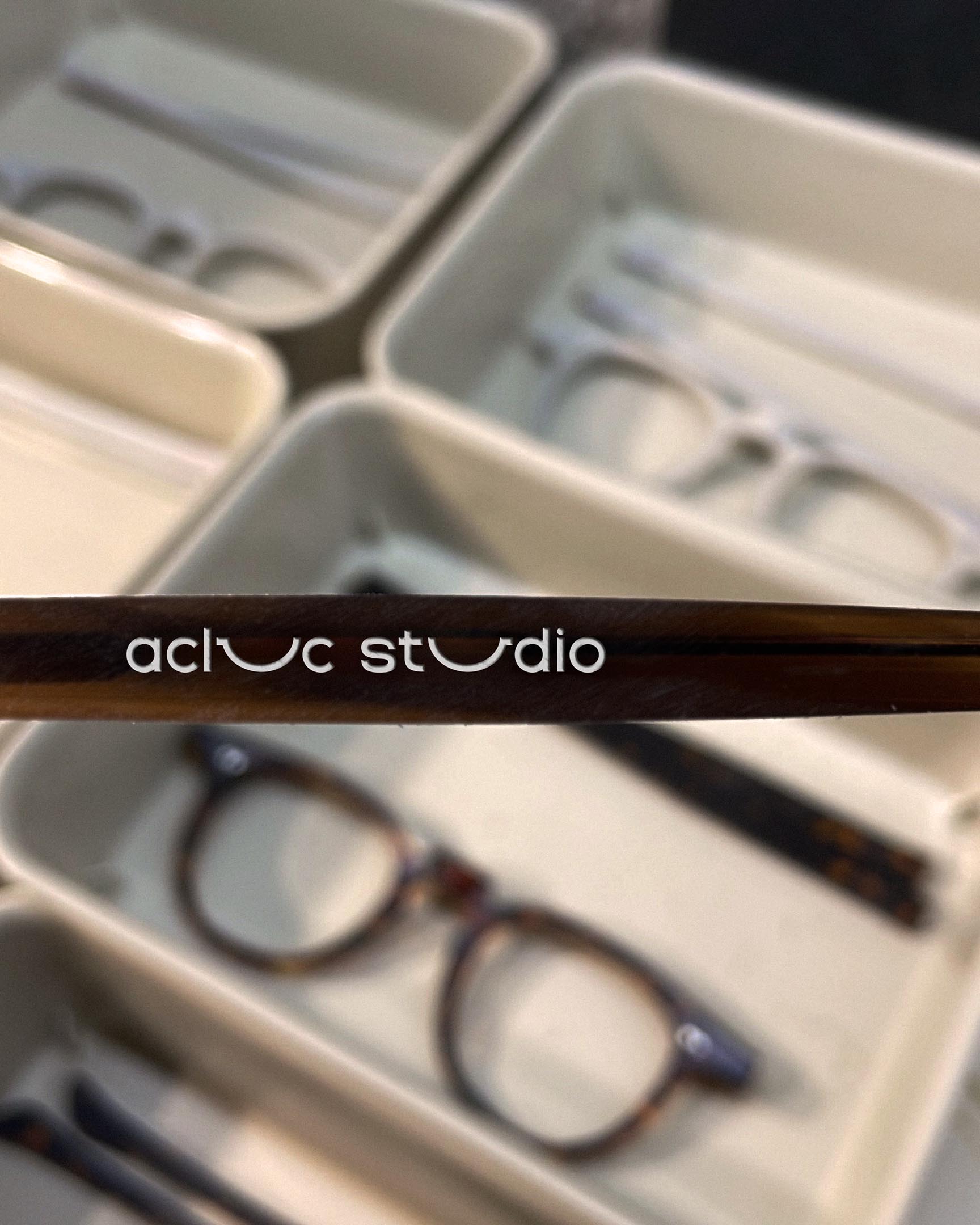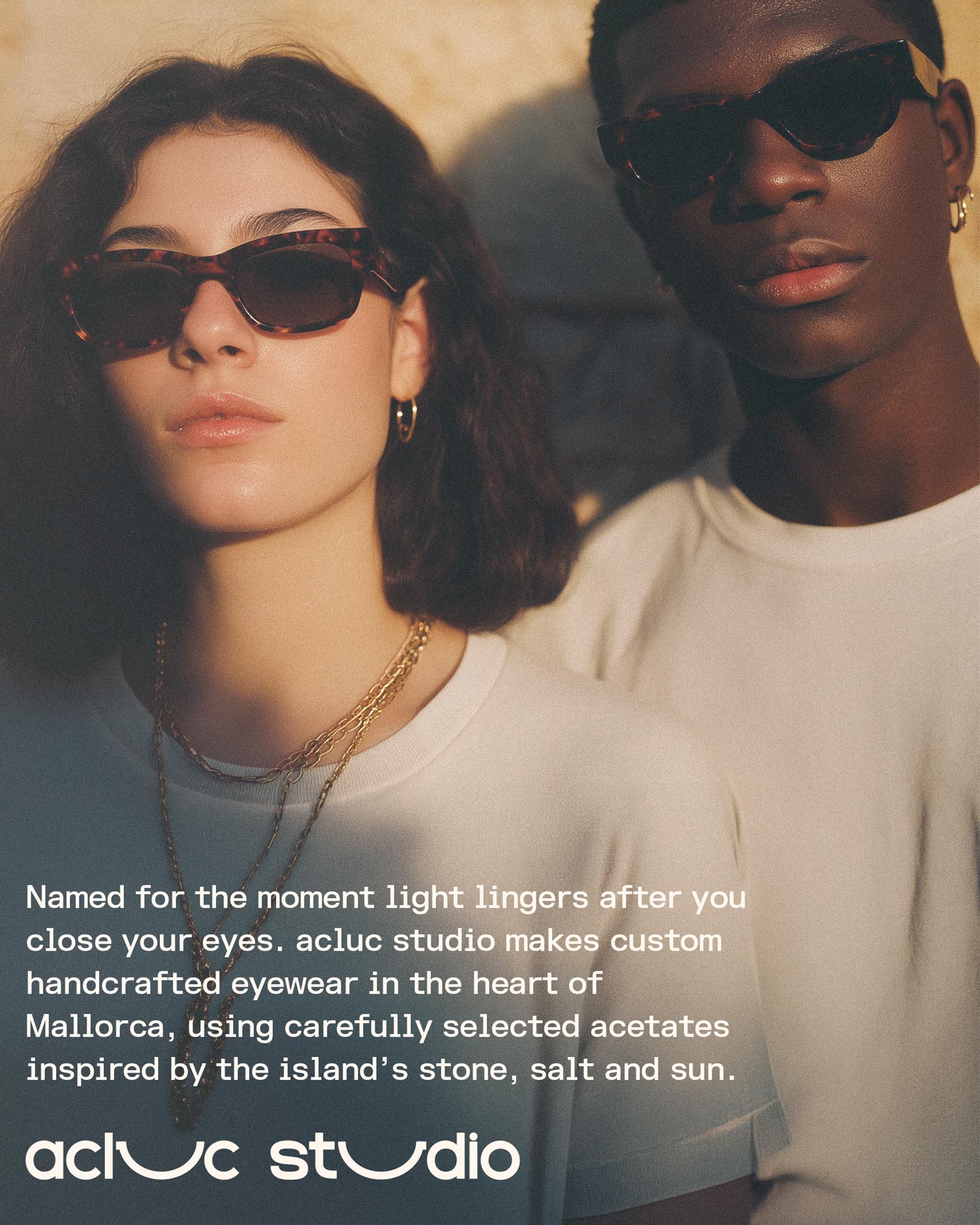 Acluc Studio takes its name from the moment light lingers after you close your eyes—that fleeting sense of warmth and calm. Based in Mallorca, they hand-make precision eyewear in full view of customers, using acetates inspired by the island's stone, salt, and sun.