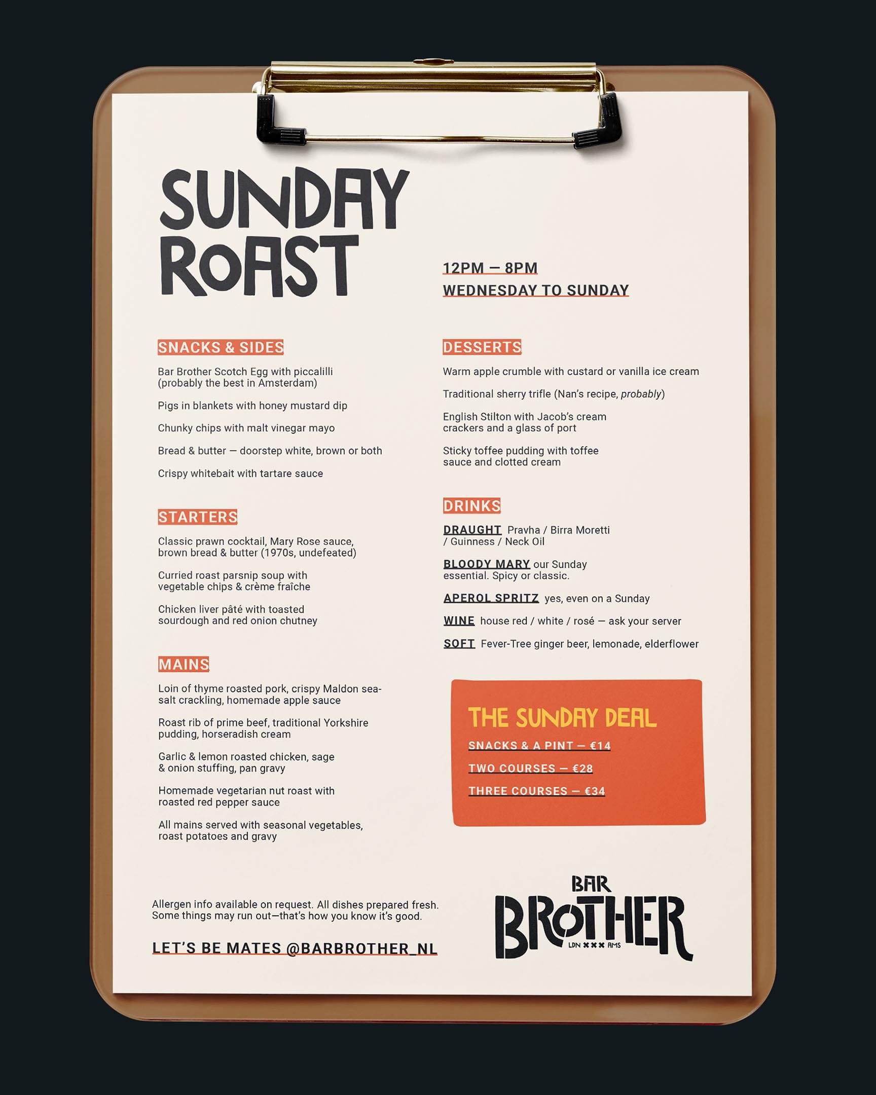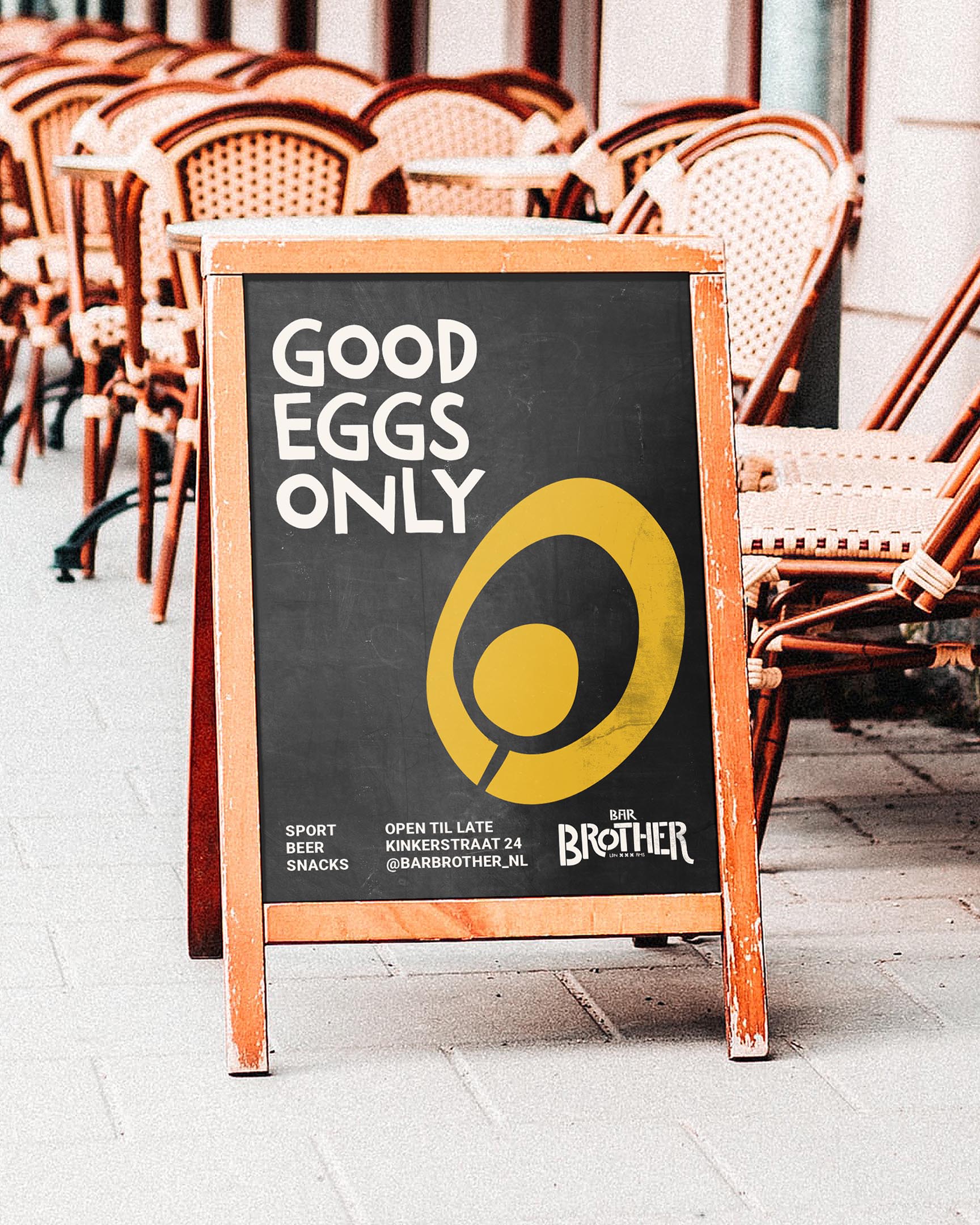 Bar Brother is a pub and sports bar in Amsterdam founded by two expats, Dave and Liam, who started slinging British roasts from a food truck during lockdown. A few years later, they opened a permanent space and needed a rebrand to match.